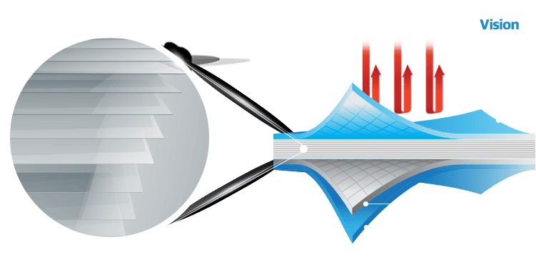 MOF 기술 이란 ? ( M ulti-layer O ptical F ilm Technology) 여러 장의 광학 필름을 적층시키는 기술로 비전필름의 독보적인 기술입니다. 크리스탈라인 필름은 MOF 기술을 적용하여 금속 성분이 일체 들어가지 않고도 적외선 열 차단율 최대 99% 성능을 보여줍니다.